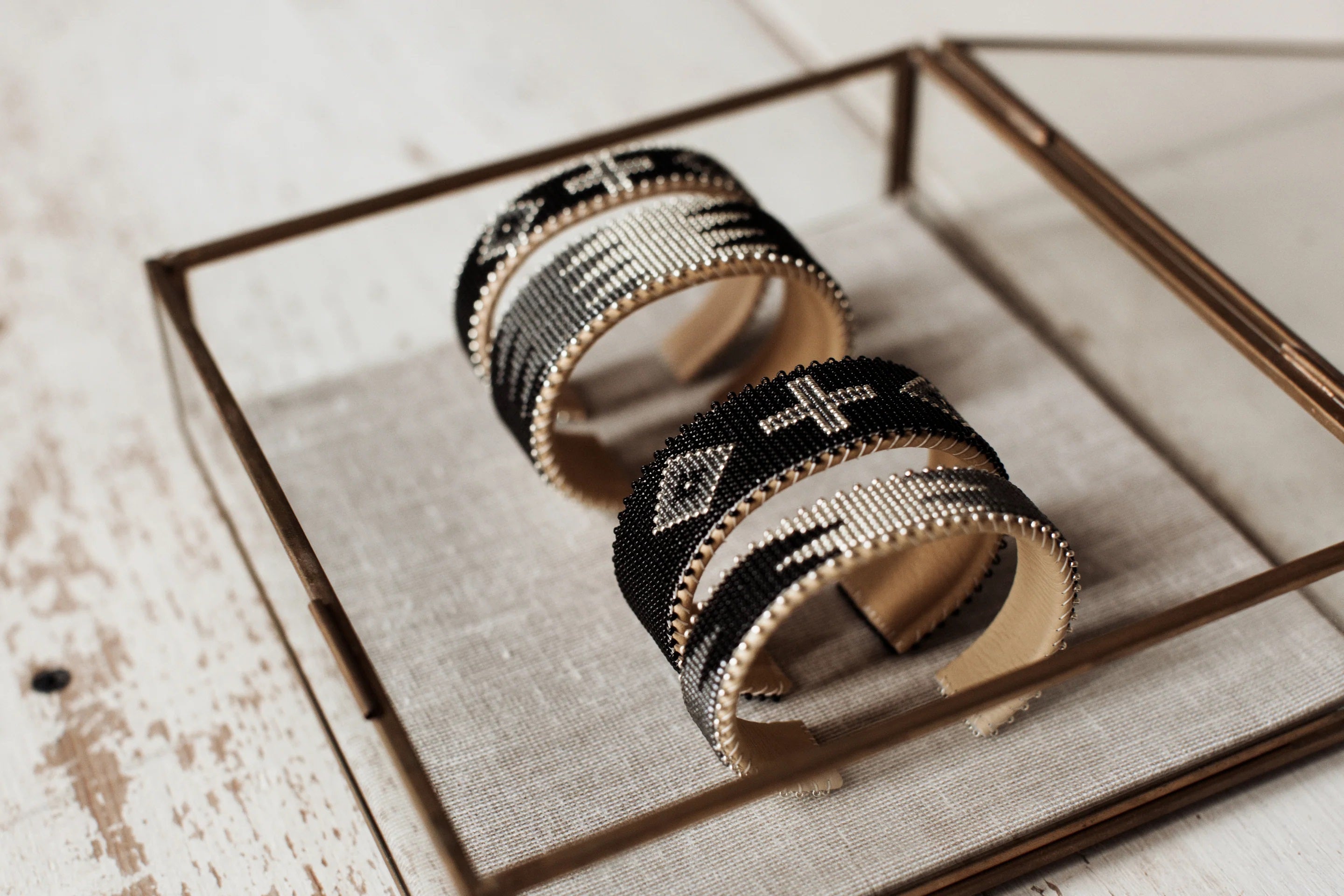 The Dark Skies Collection was inspired by the wonder of the desert’s night sky during a storm. Dark black and gray beads contrast sharply with silver and gold patterns that evoke the humbling, starry expanse of space and the power of a sudden lightning storm. A striking accent for special occasions—or a bold statement for every day—the handcrafted Dark Skies Collection carries a sense of awe and wonder for the for the natural world.