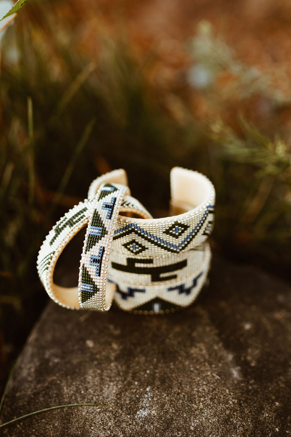 The key to our economic model is flexibility. Our mission is to allow artists living on the reservation to remain on their land and work the hours they choose around the needs of their children, elders and community and avoid the long commute to traditional urban jobs. We are collaborative in setting the price point for their remarkable work. To demonstrate our gratitude and respect, we gift each individual artisan 6% of their annual compensation as another way to say thank you for bringing these beautiful cuffs to you, our Etkie customers.